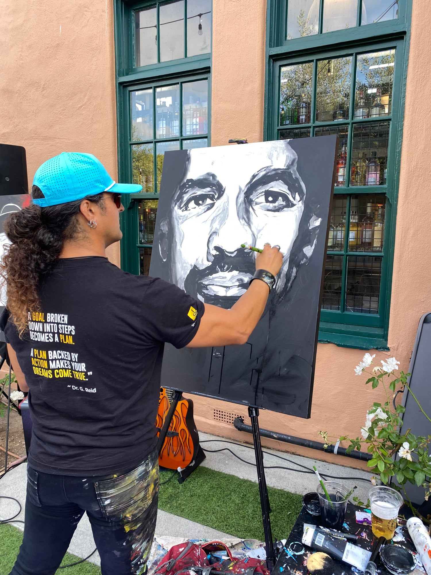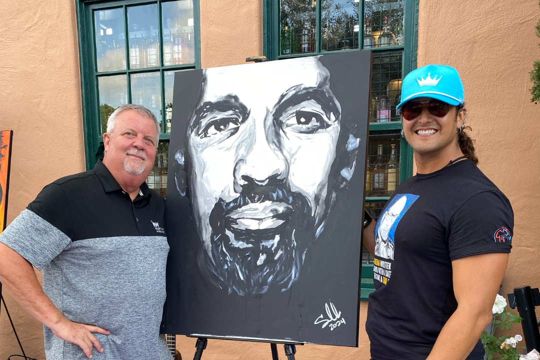 Sergio, originally from New Mexico and now a proud resident of San Diego for over 17 years is not just an artist and musician, but also a philanthropist. His live paintings bring events to life, enhancing the ambiance of weddings, sporting events, charities, and more with his unique blend of artistry and live music.